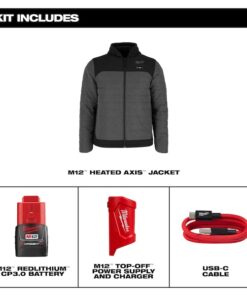M12 Heated TOUGHSHELL Men’s Jacket, Gray, Heats 3 to 12 Hours, 2 Outside Pockets, 2XL