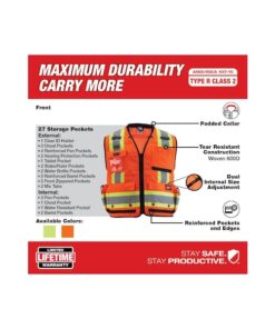 Class 2 Surveyor’s High Visibility Orange Safety Vest – 2X-Large/3X-Large