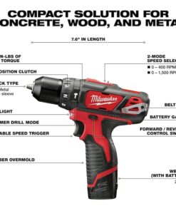 M12 1/4″ Hex Screwdriver, (2) CP 1.5 Batteries, M12 Battery Charger, Storage Bag