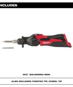 M12 Soldering Iron Kit, 90 W, 12V, 750 Degrees F, Chisel & Conical Tips Included, Battery Included