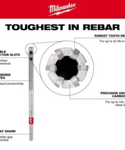 Rebar Cutter Drill Bit, 1 1/8 in Drill Bit Size, Carbide Tipped, 12 in Overall Length, Straight with Three Flats, 10 in Maximum Drilling Depth, 1 1/8 in Shank Diameter, Not Applicable Shank Hex Size, 2 in Shank Length, Regular Spiral