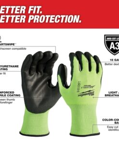 12PK High Visibility Cut Level 3 Polyurethane Dipped Gloves – L