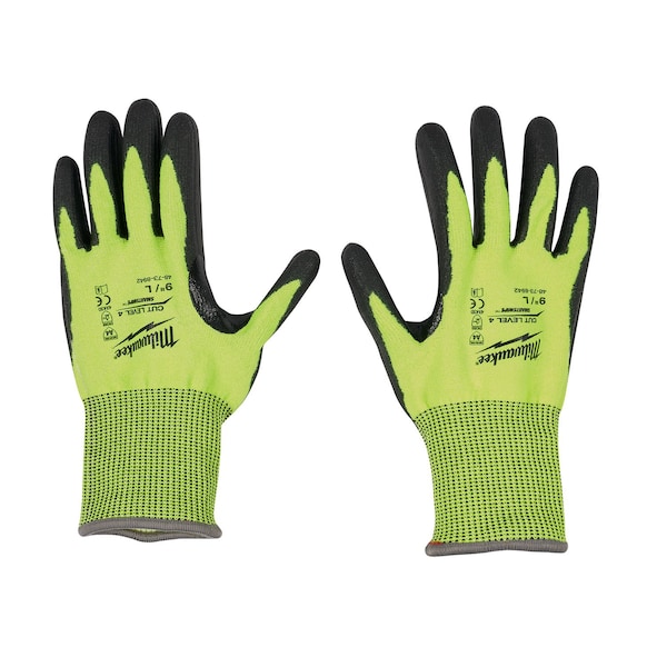 12PK High Visibility Cut Level 3 Polyurethane Dipped Gloves – L