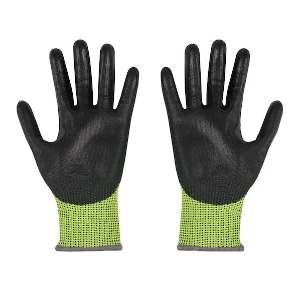 Hi-Vis Cut Resistant Coated Gloves, Cut Level A5 , Dipped , Polyurethane , Smooth , L ( 9 ) 12 PK
