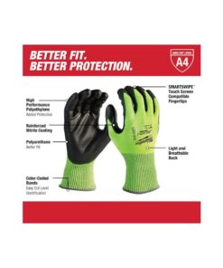 12PK High Visibility Cut Level 3 Polyurethane Dipped Gloves – XL