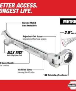 15 pc. Metric Flex Head Ratcheting Combination Wrench Set