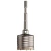 Milwaukee??s one piece carbide tipped core bits are ideal for drilling large holes where the depth is relatively shallow. The core bit cuts a kerf only. The inside core must be removed by the operator before deeper drilling can be accomplished. Use of centering bit 48-20-5495 is recommended (not included). Use drift key 48-20-5497 to remove centering bit from the one piece core bit. The one piece core bits are available in SDS-Max or Spline shanks. They come in a variety of diameters ranging from 1-1/2?? to 6?? with overall lengths of 11-3/8?? or 22?? and a drilling depth of 3??. The asymmetric tooth pitch with alternating tooth geometries creates faster material pulverization. The one piece design maximizes energy transfer and the thick wall core body is durable even in large hammers. The fluted core exterior minimizes friction loss and removes debris faster.