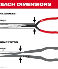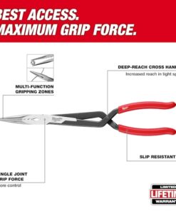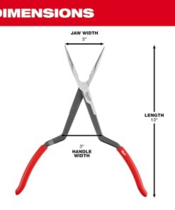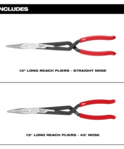Long Reach Pliers Set, Plier Types Needle Nose Pliers, Nose Shape Needle, Jaw Bend 45 Degrees , ESD-Safe No, Overall Length 15 1/8 in, Maximum Jaw Opening 3 in, Jaw Length 3 in, 3 1/4 in, Tip Width 3/16 in, Number of Pliers 2, Precision No, Tether Ready No, Jaw Thickness Not Available, Insulated No, Jaw Shape Flat, Jaw Texture Serrated, Non-Sparking No, Voltage Rating Not Rated, Features Corrosion Resistant, Deep-Reach Cross Handle, Ergonomic Handle Design, Slip Resistant Grips