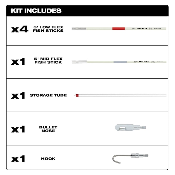 Rod Set, Product Type Rod Set, End Style Bullet Nose, Single Hook, Flexibility Low, Medium, Maximum Wire Capacity Not Applicable, Minimum Wire Capacity Not Applicable, Tool Length 5 ft, Number of Rods Included 1, Rod Diameter 5/16 in, Rod Material Fiberglass, Non-Conductive No, Photoluminescent Material Yes, Includes Light No, Voltage Rating Not Rated, Assembled Weight 1.7 lb