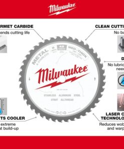 Circular Saw Blade, Series 48-40, Blade Dia. 8 in, Max. Blade Speed 5,000 RPM, Arbor Size 5/8 in, Arbor Shape Round, Diamond Knockout Diamond Knockout Not Included, Number of Teeth 42, Max. Cutting Depth 2 3/4 in, Primary Material Application Steel, Steel Alloys, Materials Cut Ferrous Metals, Steel, Metal Cutting Type Thick Metal, Wood Cutting Type Not Applicable, Cut Width 0.07 in, Tip Material Carbide, Hook Angle 0 Degrees , Tooth Grind M-ATB, For Use With Saw Type Circular Saws