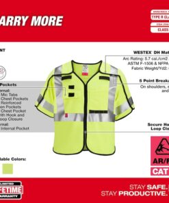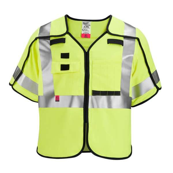 AR/FR Cat.1 High Visibility Vest 2XL/3XL Class 2 U Back, , Hook-and-Loop 10 Pockets, 2 Mic Tab, No