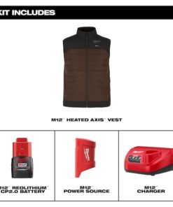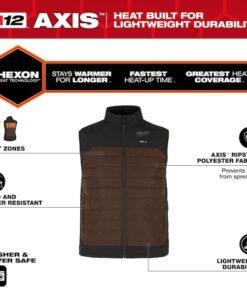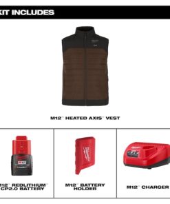 Heated Vest, Vest Style Heat Vest, Garment Type Vest, Size S, Maximum Chest Size 36 in, Minimum Chest Size 34 in, Color Brown, Material Polyester, Front Closure Type Zipper, Includes Lining Yes, Lining Material Polyester, Length 27 1/2 in, Insulated for Cold Conditions Yes, Heating Time 2 to 8 hours, Gender Men’s, Number of Outside Pockets 2, Includes (1) Battery, (1) Battery Charger, (1) Battery Holder, Battery Voltage 12 V, Wind-Resistant Yes