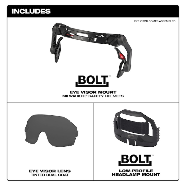 BOLT Eye Visor – Tinted Dual Coat Lens (Compatible with Milwaukee Safety Helmets & Hard Hats)