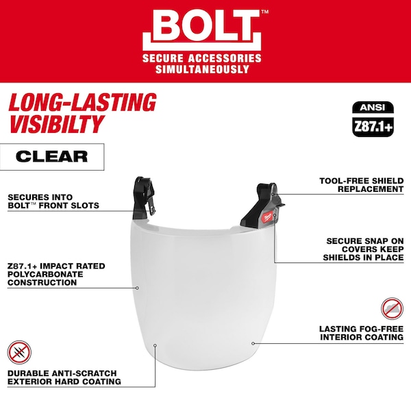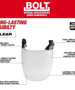 BOLT Full Face Shield – Clear Dual Coat Lens (Compatible with Milwaukee Safety Helmet (No Brim))