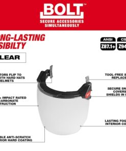 BOLT Full Face Shield – Clear Dual Coat Lens (Compatible with Milwaukee Safety Helmets & Hard Hats)
