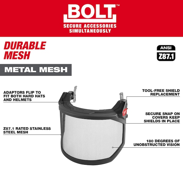 BOLT Full Face Shield – Metal Mesh (Compatible with Milwaukee Safety Helmets & Hard Hats)
