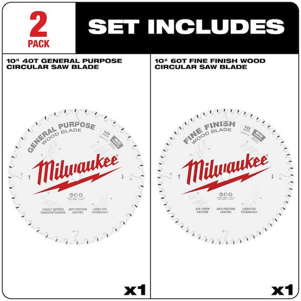 Circular Saw Two-Pack Wood Cutting Blades 10″ 40T + 60T