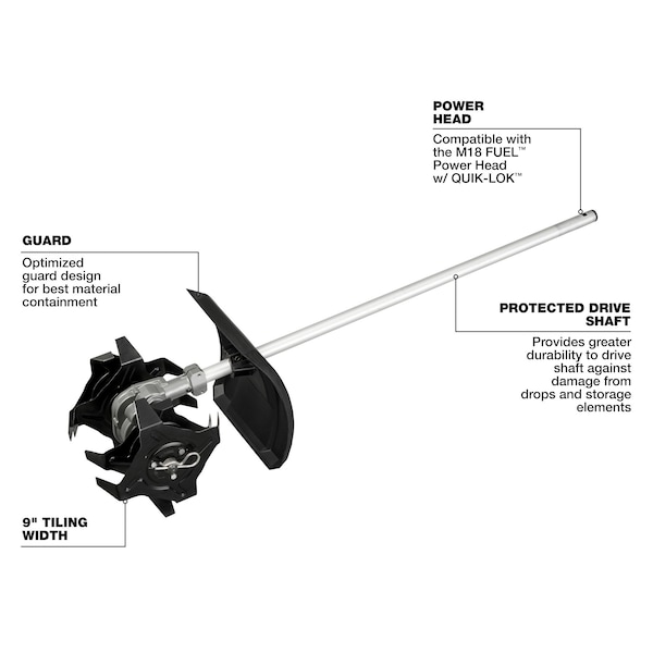 Cultivator Attachment, Product Type Cultivator Attachment, Overall Width 10 in, Overall Length 41 1/2 in, Diameter Not Applicable, Compatible Product Type Power Heads