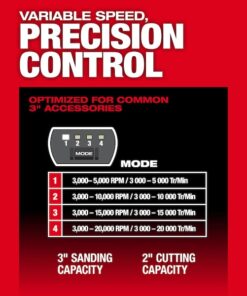 Die Grinder, Voltage 12V DC, Max. Speed 20,000 RPM, Grinder Orientation Right Angle, Switch Type Trigger, Brushless Motor Yes, Cordless Tool Kit Contents (1) Bare Tool, Accessory Free Tool Change No, Collet Size 1/4 in, For Wheel Dia. 2 in, Speed Ranges 3,000 to 20,000 RPM, Minimum Speed 3,000 RPM, Number of Speed Settings 4, Lock-Off Switch Yes, Brake Type None, Anti-Kickback Clutch Type Not Applicable, Vibration Level Not Applicable, Safety Features Lock-Off Switch