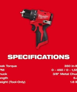 Drill-Driver, Voltage 12 V DC, Battery Capacity Not Applicable, Chuck Size 3/8 in, Handle Type Pistol Grip, Tool Weight 1.6 lb, Includes Not Applicable
