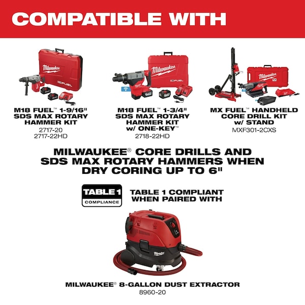 Dust Brushes, For Hose Diameter 6 in, Material Plastic, Length 15 1/4 in, Width 8 1/8 in, Depth 15 1/4 in, For Vacuum Type Shop Vacuum, Fits Vacuum Brand Milwaukee, Fits Vacuum Models 8960-20, Includes Brush Ring, Hose Clip Adapter