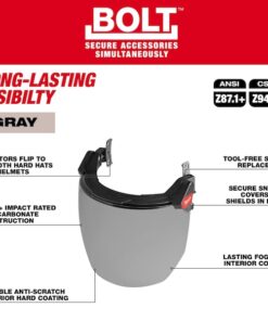 BOLT Full Face Shield – Gray Dual Coat Lens (Compatible with Milwaukee Safety Helmet (No Brim))
