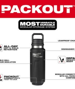 Insulated Bottle, 36 oz Capacity, Black, 18/8 Stainless Steel, All-Day Hot and Cold Retention, Dishwasher Safe, Double-Walled Vacuum Insulated, Durable, Leak Proof Lid, PACKOUT Connectivity