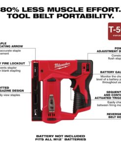 The Milwaukee M12 3/8?? Crown Stapler delivers a true hand tool replacement. The 2447 is designed to drive a range of 3/8?? flat crown staples (1/4?? ?C 9/16??) through an array of materials and substrates. At just 3 lbs and 7.25?? long the compact design allows for great access into tight spaces and convenient tool belt portability. An easy to squeeze trigger design significantly reduces fatigue associated with traditional hand staplers. Integrated sequential and contact actuation trigger design provides increased productivity and seamless changing between firing modes. The 2447 is compatible with all Milwaukee M12 batteries, and carries Milwaukee??s 5-Year limited power tool warranty.
