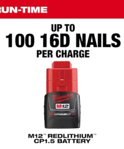 A compact, portable solution for powerful nail driving in hard-to-reach workspaces. M12 Cordless Lithium-Ion Palm Nailer provides a portable solution for professional nailing applications in places unreachable by a traditional nail gun. Its powerful impacting mechanism delivers 2.2 ft-lbs of blow energy, while the M12 REDLITHIUM Battery Pack (sold separately) produces more work per charge and more work over pack life than the competitors, as well as best-in-class performance, in extreme jobsite conditions. This subcompact cordless tool features a 6D-16D magnetic collet for a secure hold on nails for one-handed use. Its ergonomic design provides superior comfort and control. The palm nailer also features a built-in LED light, an onboard fuel gauge, and comes with a convenient hand strap to ensure the highest level of user safety.