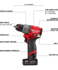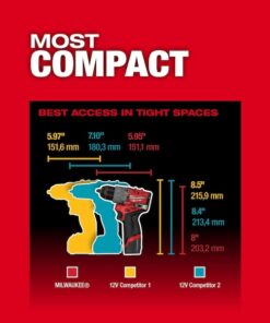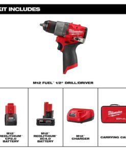 M12 FUEL 1/2″ Drill/Driver is the Most Powerful Subcompact Drill Driver, the Most Compact in size, and provides the Fastest Speed Under Load. The POWERSTATE brushless motor delivers the most power for the capability to perform the widest variety of applications at high speed for unrivaled subcompact performance. At only 5.9″ in length, this portable drill is the shortest solution in class offering most access into tight spaces. REDLINK PLUS Intelligence delivers top of the line thermal performance to give users the Fastest Speed Under Load in order to drill and drive faster than any other subcompact drill. Using M12 REDLITHIUM 2.0Ah compact and 4.0Ah extended capacity battery packs will deliver more work per charge and more work over the life of the pack than competitive batteries. all-metal 1/2″ chuck and all-metal gearcase deliver best-in-class durability. The mechanical clutch delivers consistent torque for driving fasteners. M12 FUEL 1/2″ Drill Driver is part of the M12 System which is fully compatible with over 125 solutions.