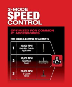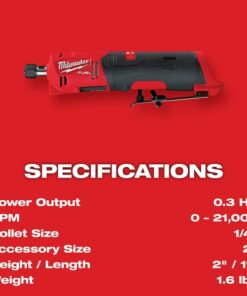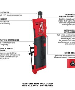 M12 FUEL 1/4″ Straight Die Grinder is designed to replace pneumatic die grinders. The die grinder provides you with up to .3 HP performance to outperform pneumatic die grinders by 20%. The M12 inline die grinder features 3-Mode speed control and a responsive variable-speed trigger giving you unmatched control with your most common accessories. The cordless die grinder provides you with greater access and mobility, eliminating the frustrations of hoses and compressors.