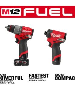 M18 Compact Brushless 2-Tool Kit, Hammer Drill & Impact Driver, 2 Batteries, M18 & M12 Charger, Bag