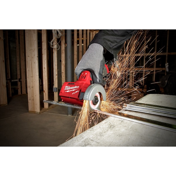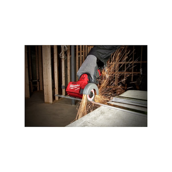 The M12 FUEL 3 in. Compact cut off tool delivers multi-material cutting capability in an ergonomic package, optimized for one-handed use. Spinning at 20,000 RPM and featuring a POWERSTATE brushless motor, the 2522 delivers fast and accurate cutting performance in a wide range of materials. The unique reversible blade rotation feature provides users ultimate control over material removal, along with the ability to select their desired blade rotation for the direction they need to cut. For ultimate cutting versatility, the 2522 ships with three accessories: a metal cut off wheel, a diamond tile blade, and a Carbide abrasive blade. The M12 fuel 3 in. Compact cut off tool also includes a tool free accessory guard & shoe that includes a vacuum adapter for dust mitigation as well as cut depth adjustment. Lastly, the tool also features tool free guard adjustment and an LED light.