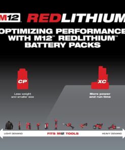 - Versatility: powers 70+ Milwaukee M12TM cordless solutions