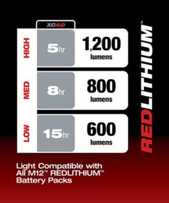 Underbody Light, Battery Platform M12(TM), Series No Series, Light Output Mode High, Low, Medium, Brightness Level 600 lm, 800 lm, 1,200 lm, Maximum Brightness Level 1,200 lm, Minimum Brightness Level 600 lm, Mount Type Magnetic, Maximum Height 6 1/4 in, Light Distribution 90 Degrees , Head Type Rotating, Maximum Head Rotation Angle 180 Degrees , 300 Degrees , Cordless Tool Kit Contents Bare Tool, Run Time 5 hr, 15 hr, Voltage 12V DC, Battery Included / Bare Tool Bare Tool