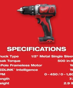 The most compact drill driver in its class is more powerful than the competition. Built with a Milwaukee 4-pole frameless motor, the M18 compact 1/2 in. drill driver delivers 500 in-lbs of torque and up to 1,800 RPM. At only 7-1/4 in. length, this drill driver allows you access to the tightest work spaces. An all-metal gear case and 1/2 in. metal chuck provide maximum durability, even on the most challenging work sites.