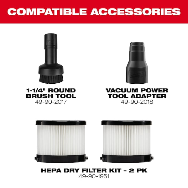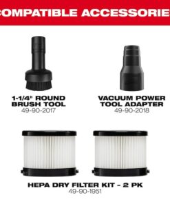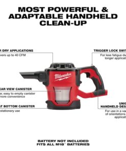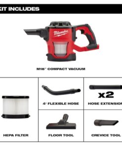 The M18 compact vacuum provides users with the most powerful & adaptable handheld cleanup tool. A high performance motor creates best in class suction for cleanup of drywall dust, wood/metal shavings, and common jobsite debris. With a unique handheld design, the M18 compact vacuum can be used in a wide variety of orientations and applications across the jobsite. For added versatility, the 0882-20 comes with (2) extension wands, 4 Ft. flexible hose, crevice tool, floor tool, and removable HEPA filter. A clear view and easy to empty canister provides added convenience. As a part of the M18 system of tools, it is powered by REDLITHIUM battery packs, which deliver up to 25 minutes of run time on a XC5.0 battery pack and 43 minutes of runtime on a HIGH DEMAND 9.0 battery pack.