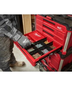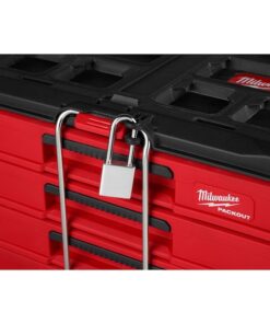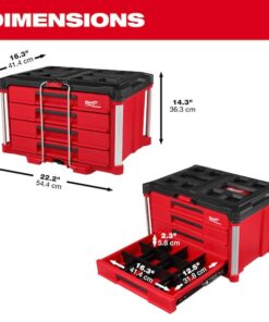 The MILWAUKEE TOOL – 48-22-8444 is a 4-drawer toolbox from the PACKOUT series, designed to provide organized storage for various types of tools. Constructed with durable polymer material, this tool box features an impact-resistant body that can withstand tough conditions. It comes in black and red colors and has integrated side handles for easy carrying. The toolbox is padlockable, providing an added layer of security against unauthorized access.