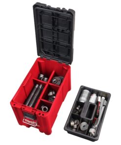 PACKOUT Compact Tool Box is part of the MILWAUKEE PACKOUT Modular Storage System, the industry’s most durable and versatile storage system. The PACKOUT Compact tool box is constructed with impact-resistant polymers and features a 75lbs weight capacity. The tool storage box connects with other PACKOUT system components via integrated locking cleats. The IP65 rating weather seal protects tools and accessories from rain and other jobsite debris. Quick-adjust dividers and an interior tray keep equipment organized. The portable tool box is easily transported with its carry handle and reinforced hinges. The PACKOUT modular storage allows you to customize your storage system for easy transportation and organization of tools and accessories.