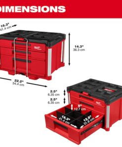 PACKOUT 2-Drawer Tool Box, 50 lb Capacity / 25 lb Capacity per Drawer, 22″ W x 16″ D x 14″ H