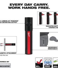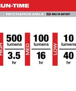Rechargeable 500L Everyday Carry Flashlight w/ Magnet allows you to work hands-free and delivers 500 lumens of TRUEVIEW High Definition Output while maintaining a compact size designed to fit in your pocket and carry at all times. You’ll work faster with the ability to quickly switch from handheld to hands-free with the magnetic base and reversible clip for easy attachment to the brim of your hat. With three output modes, including a low light mode, get the optimal light or run-time up-to 75 hours for any task. Stay ready, easily from job-to-job with USB charging and an on-board battery indicator. This USB rechargeable flashlight is built to survive the toughest jobsite conditions with an IP67 Water and Dustproof Rating and withstands impacts up to 4 meters. The MILWAUKEE Rechargeable 500L Everyday Carry Flashlight w/ Magnet built-in battery gives you high performance and rechargeable capabilities where compact size is critical. The Everyday Carry Flashlight w/ Magnet is covered by a 2-year warranty.