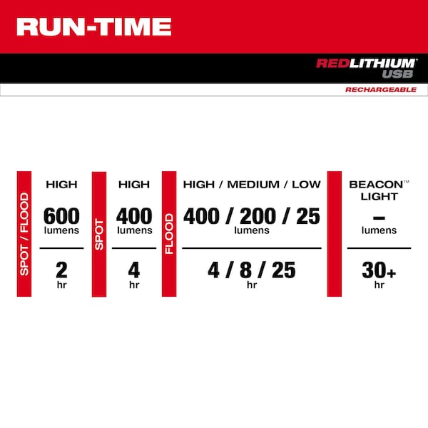 REDLITHIUM USB BEACON Hard Hat Safety Light, 600 Lumens, Rechargeable, 30 Hour Max Run Time