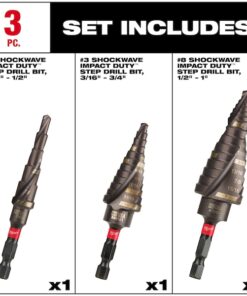 Step Drill Bit Set, High Speed Steel, TiAlN, 1/8 in to 1 in Size Range, Quick-Change Hex, Number of Drill Bits 3, Shank Length Not Applicable, Shank Hex Size 1/4 in