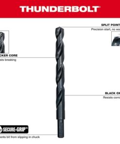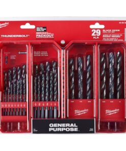 MILWAUKEE THUNDERBOLT 29PC Black Oxide Drill Bit Set offers heavy-duty performance on the jobsite. Black Oxide coating reduces heat build-up and provides corrosion resistance. The thicker core provides ultimate strength and protects against side-load breakage while a specially designed parabolic flute form clears chips and debris fast to keep the bit cool. The 135?? split point tip delivers a precision start and prevents walking for fast, accurate holes. MILWAUKEE THUNDERBOLT Black Oxide Coated bits are ideal for various drilling applications in wood, plastics, and metals. The set is organized in a customizable accessory case designed for use in PACKOUT.