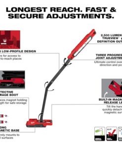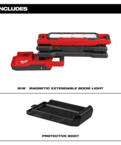 The MILWAUKEE? M18TM Magnetic Extendable Boom Light, and its two articulating arms, provides the LONGEST REACH in tight spaces. Three swivel points with 900 degrees of vertical rotation and 890 degrees of horizontal rotation, paired with a strong magnetic base, allow for FAST & SECURE ADJUSTMENTS. The magnetic base includes a release mechanism for easy removal from ferrous surfaces. The M18TM Magnetic Extendable Boom Light also comes with a Protective Storage Boot that reduces the magnet strength for safe toolbox storage. The light delivers 2,500 lumens of TRUEVIEWTM High Definition Output for up to 12 hours on low or 4.5 hours on high, providing all-day run-time on one MILWAUKEE? M18TM XC5.0 Battery. The M18TM Magnetic Extendable Boom Light has an IP54 rating for dust and water resistance, is impact rated, and is corrosion-resistant to most chemicals found in the auto shop. This LED boom light is also guaranteed by a 5-Year Tool warranty and a Limited Lifetime LED Warranty.